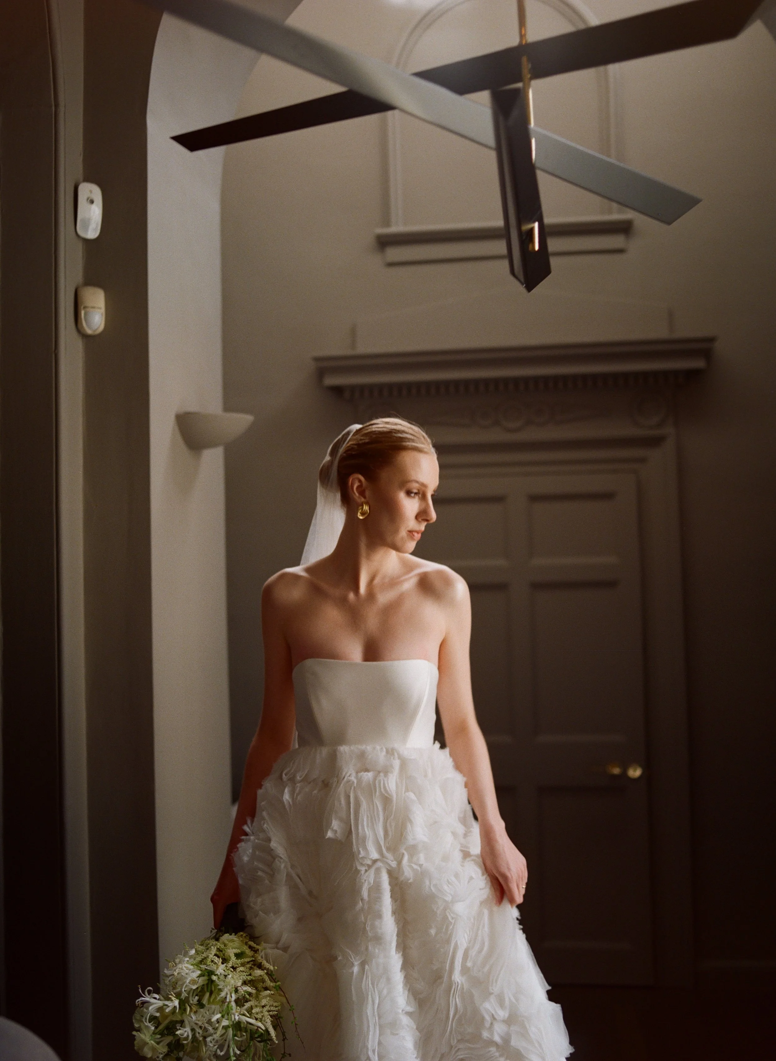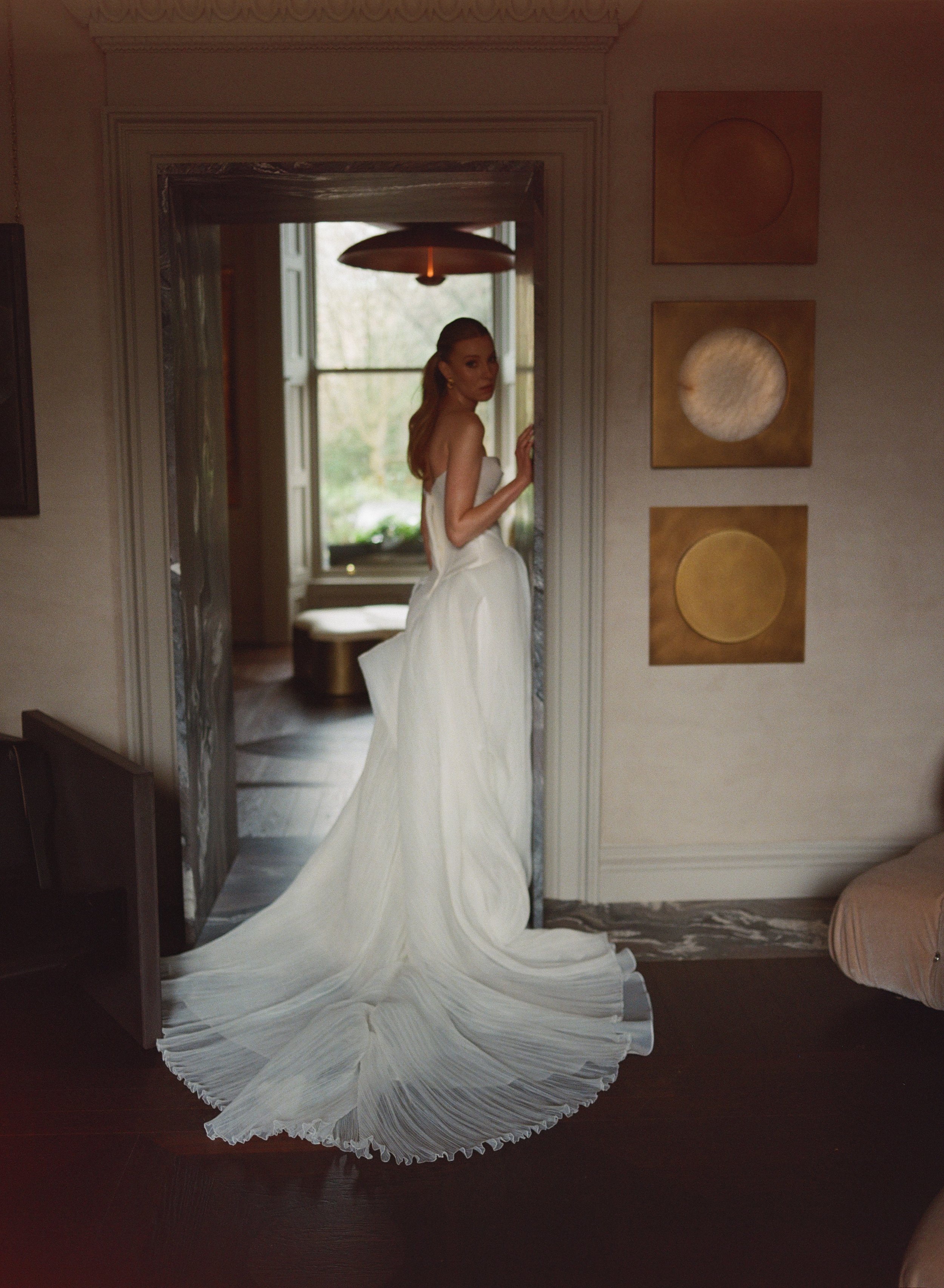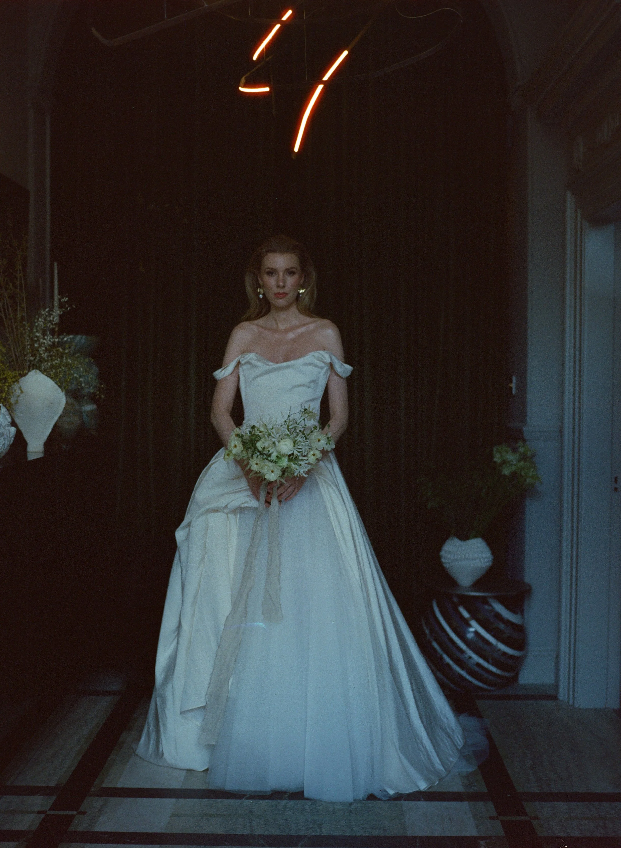 We chose the breathtaking gallery space owned by award-winning, international interior designer Roisin Lafferty in Dublin as the setting. With its striking architecture, sculptural details, and beautifully curated interiors, the space provided the perfect backdrop for a contemporary bridal story that felt both elevated and intimate.