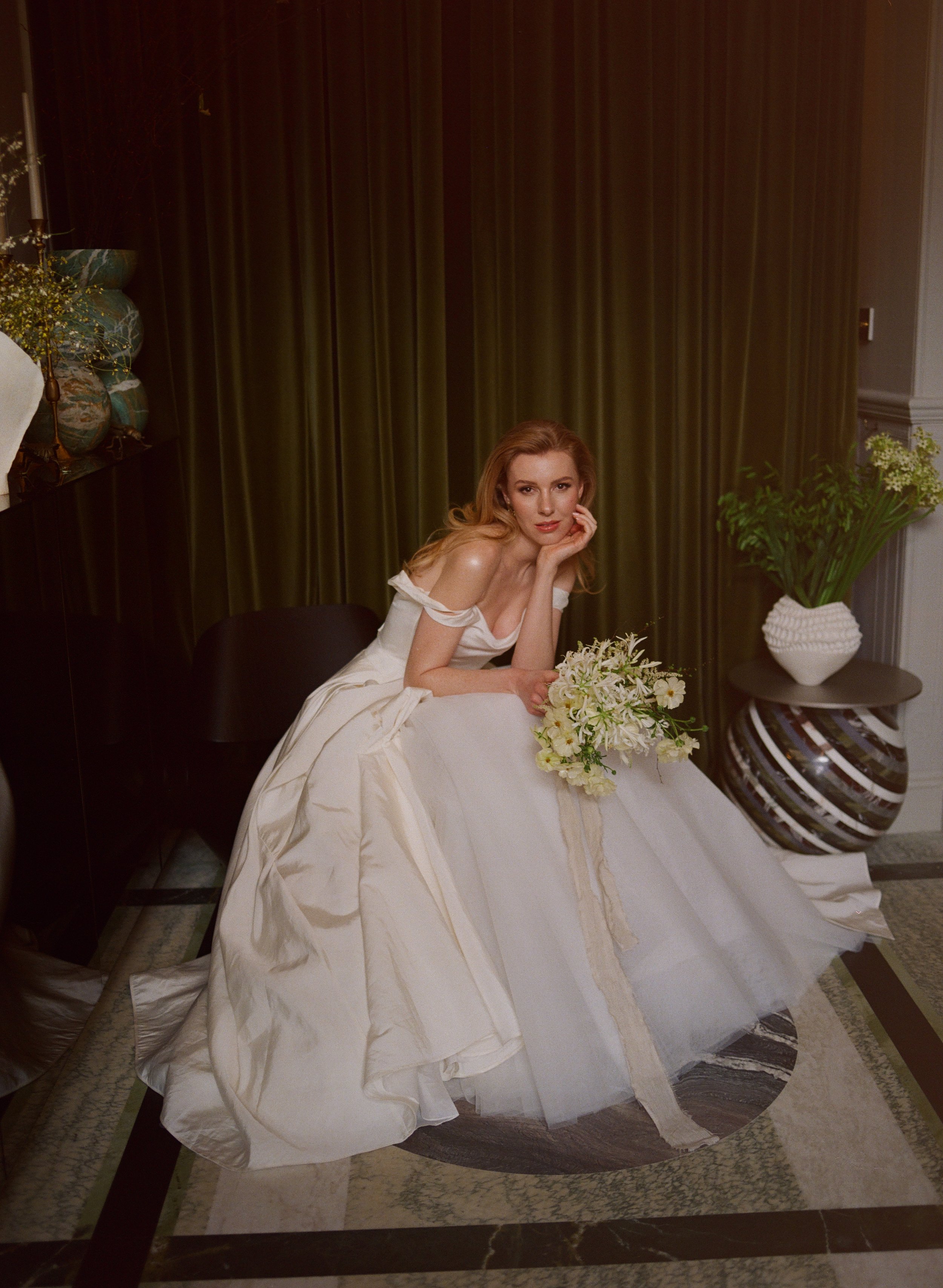 Captured entirely on film, the images have the most dreamy, ethereal quality — soft light, delicate textures, and an understated elegance that digital simply can’t replicate. Every element of the shoot was thoughtfully considered, from the styling to the florals, creating a visual narrative that feels modern yet timeless.